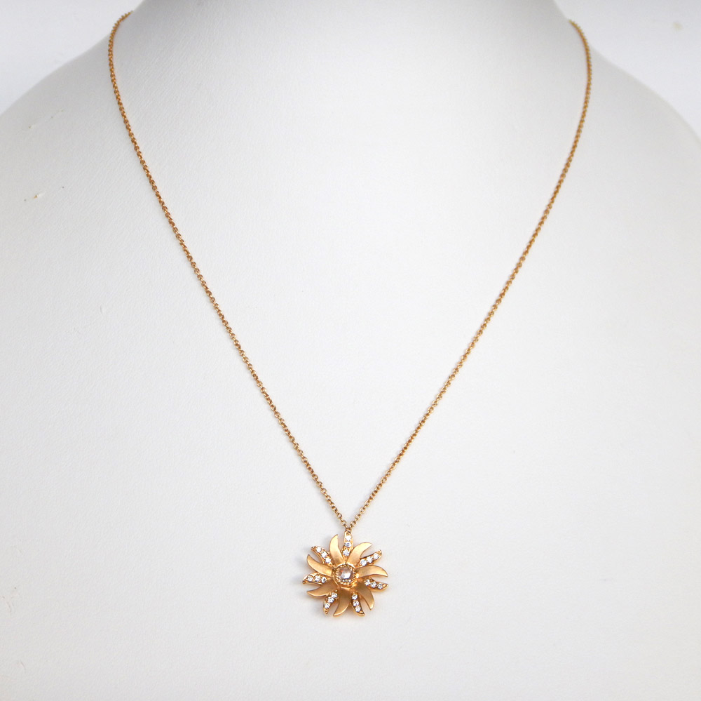 Radiating warmth and brilliance, this diamond sun necklace captures the beauty of golden light and features a rose-cut diamond in the center.