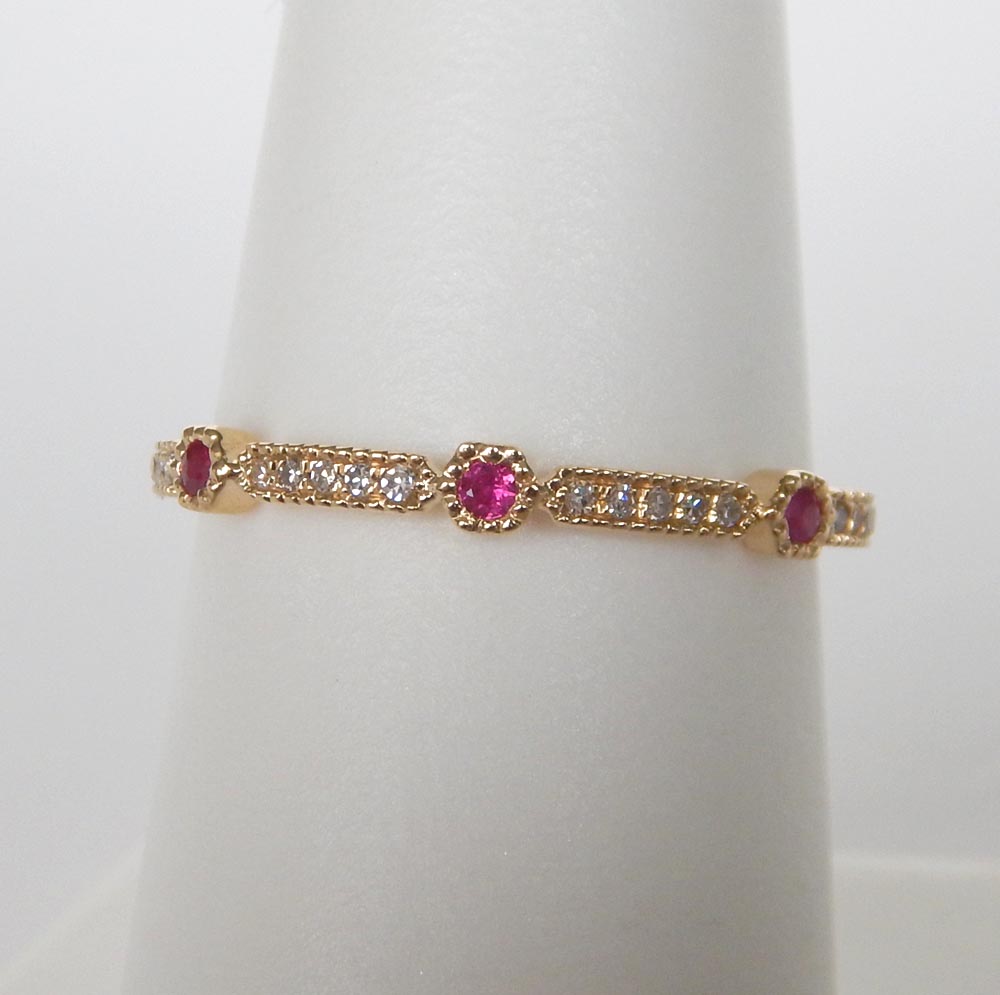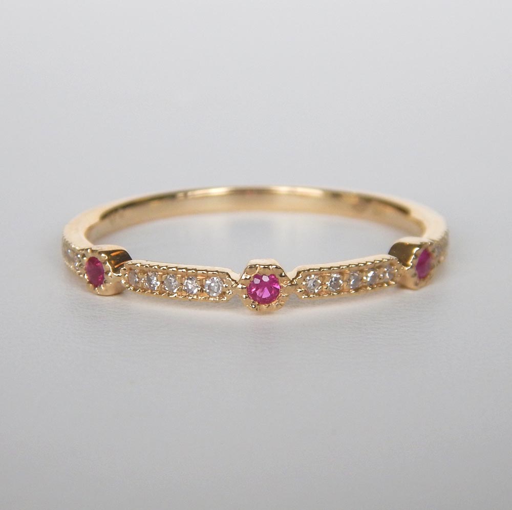 yellow gold ruby and diamond stacking ring