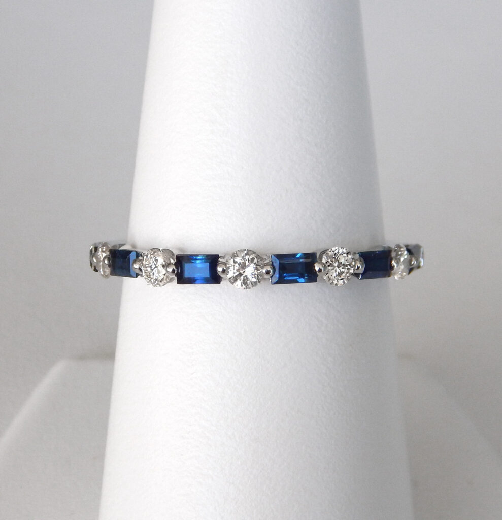 white gold sapphire and diamond bandwhite gold sapphire and diamond band on finger