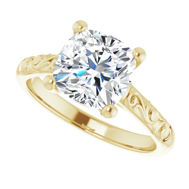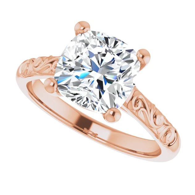 vintage inspired white gold cushion cut diamond engagement ring